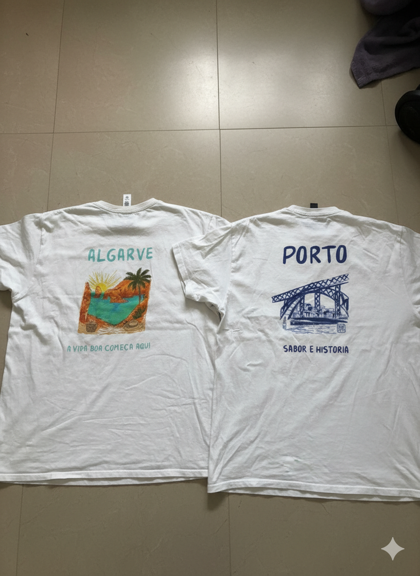 Nous proposons des sweat-shirt et t-shirts 100 % coton, unisexes, inspirés de différentes villes emblématiques du Portugal. Chaque modèle rend hommage à une ville à travers un design unique.